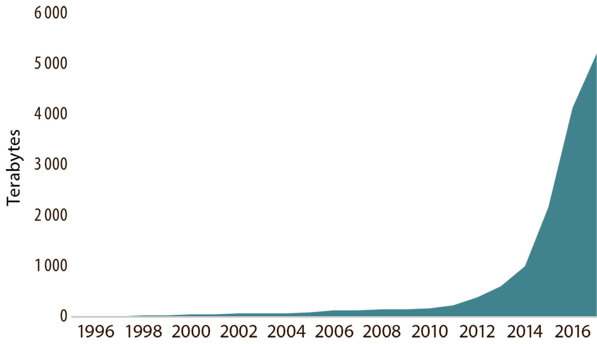 Seismic and well information from the NCS is readily available through Norway’s Diskos data repository, and much of this material has been made publicly available. The quantity of data in Diskos has grown exponentially since 2010 (figure 6.10). A number of discoveries have been made by re-evaluating available historical data with new techniques and technologies, and by collating them in new ways. Big Data analyses may provide fresh insights here. Much of the data are difficult to access for analysis today because they are stored in varying formats on different media (such as scanned paper documents). Efforts are now being made in Diskos to improve the organisation of data, so they can become easier to use in such analyses.